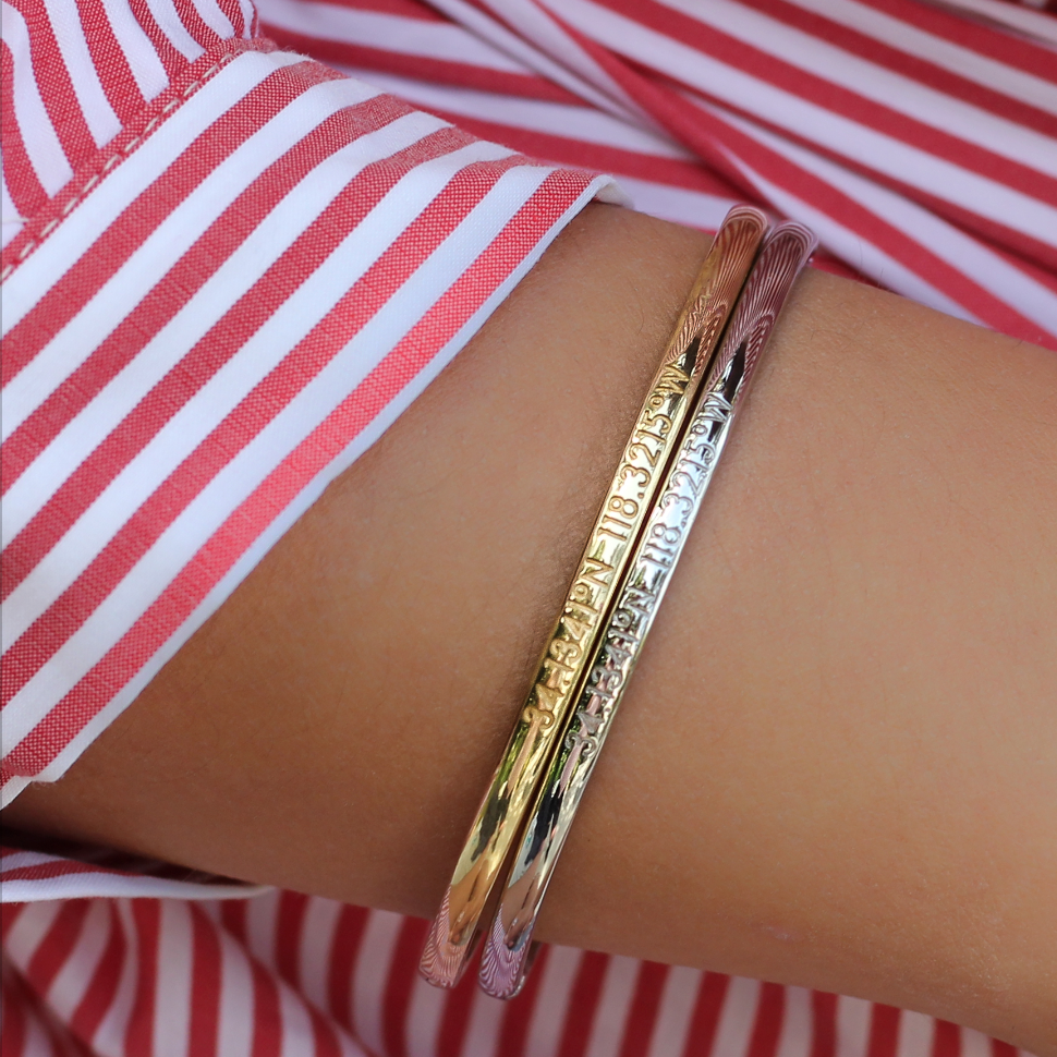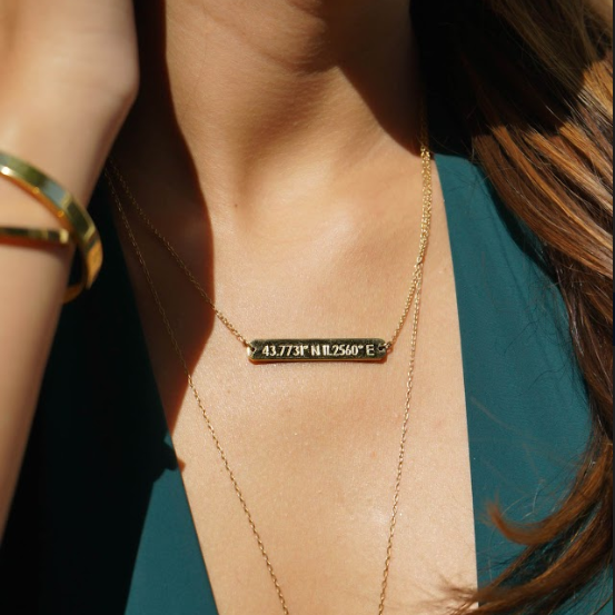 Customizable + personalized jewelry engraved with Earth’s longitude + latitude coordinates because every memory has a place.